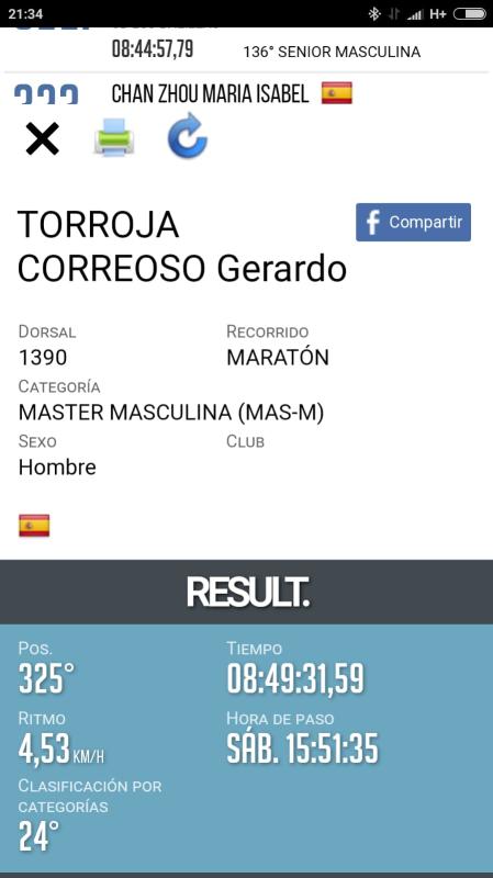 Finalmente y siendo la primera en competición con esa distancia , conseguí el objetivo marcando 8 horas y 49 minutos.