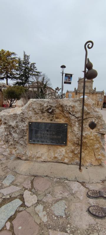 14 etapa del Camino de Santiago Camino Francés de Ledigos a Bercianos del Real Camino 29 km , anunciaba lluvia , caminos y asfalto he tenido suerte todo el camino nublado y con rachas de viento solo la última hora ha empezado a lloviznar , cabe destacar que la piedra en Sahagun indica exactamente la mitad del Camino de Santiago.