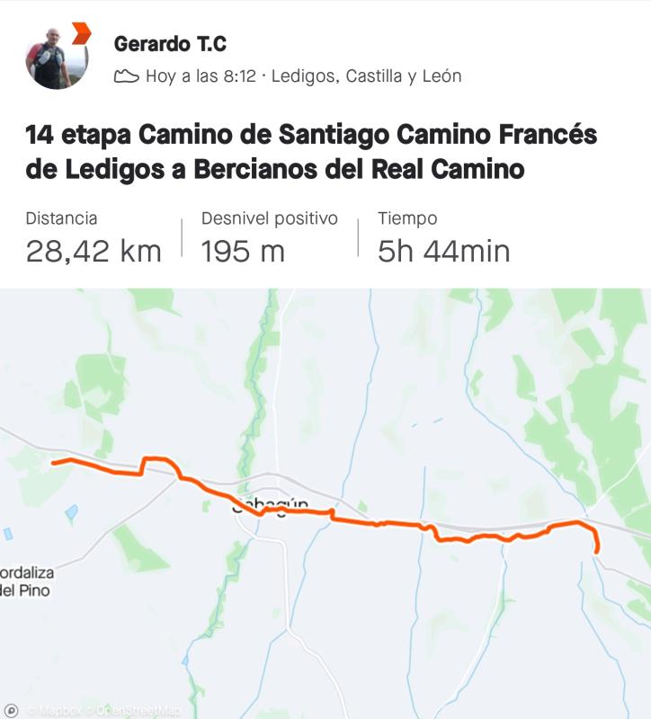14 de Marzo 2022 – 14 etapa de Ledigos a Bercianos del Real Camino – 29 km – desnivel positivo 195 mts
