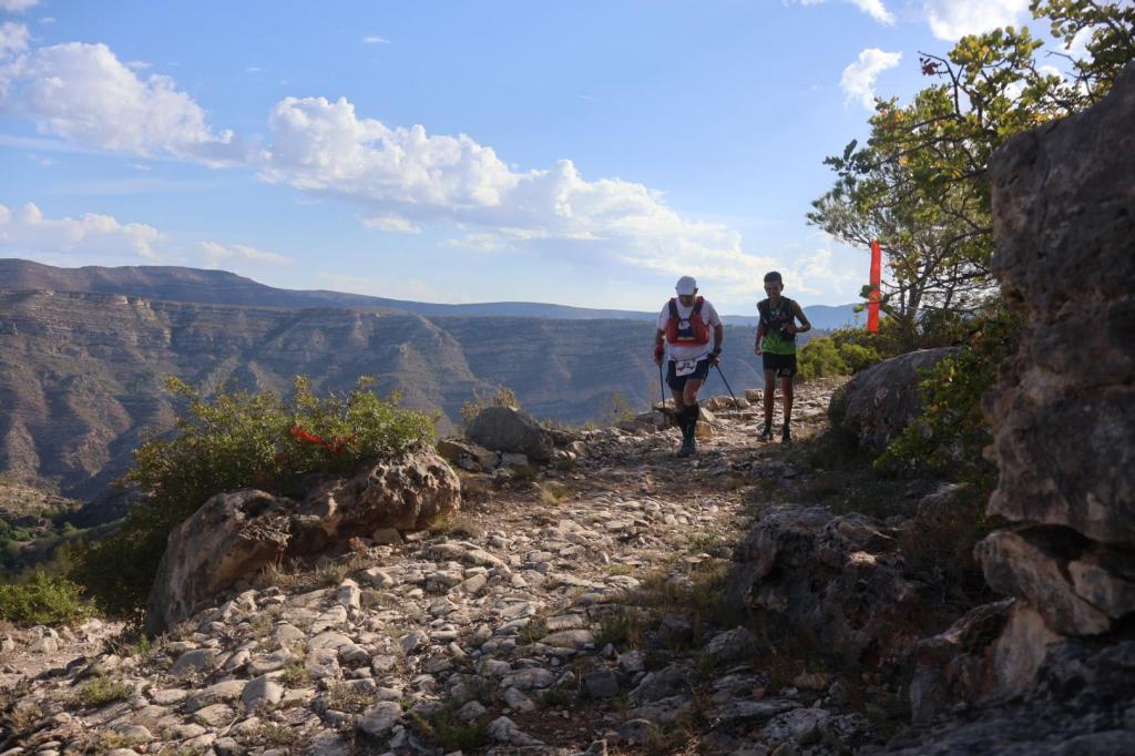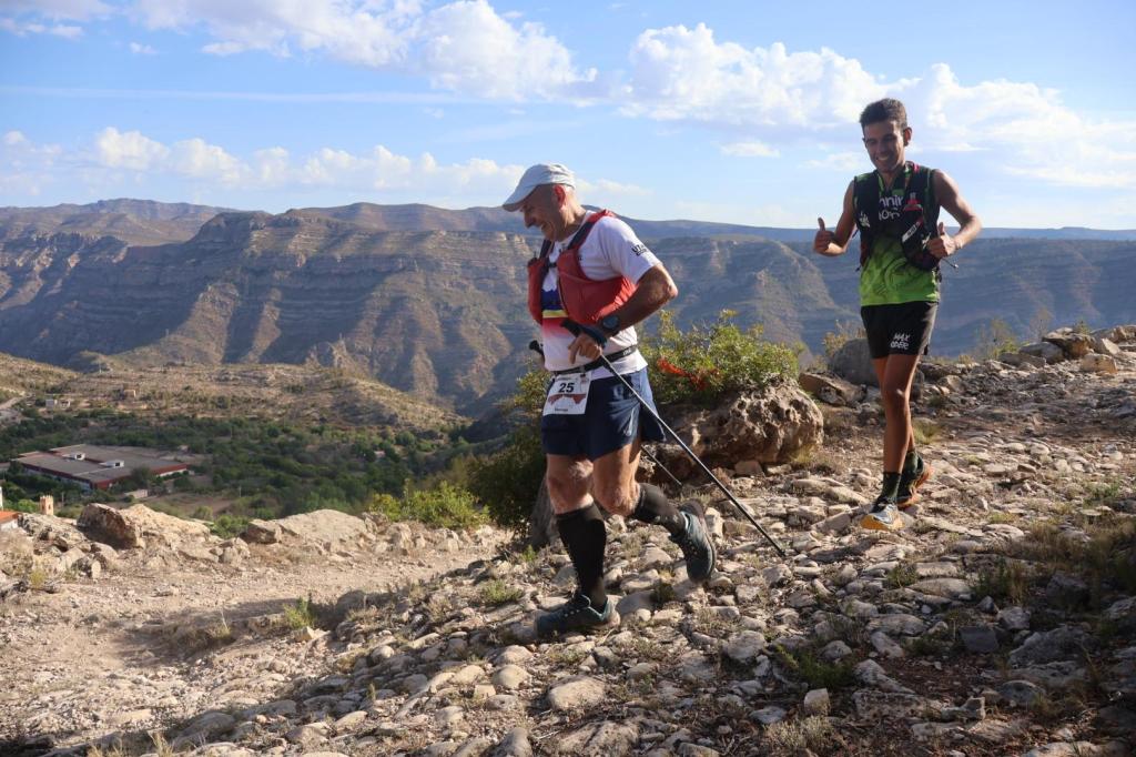 VI Trail Millares 24Km 1100+, Primera parte mas corredora , hasta que llegamos al Chorrador o Monstruo de Millares, una cascada de agua que es el salto de agua mas grande en la Comunidad Valenciana 30mts, en el mapa del perfil se ve a mitad del recorrido la brecha , una bajada super técnica y una subida paralela a la cascada con un desnivel de 39% a partir de ahí subida y subida aunque eso si con menos pendiente.